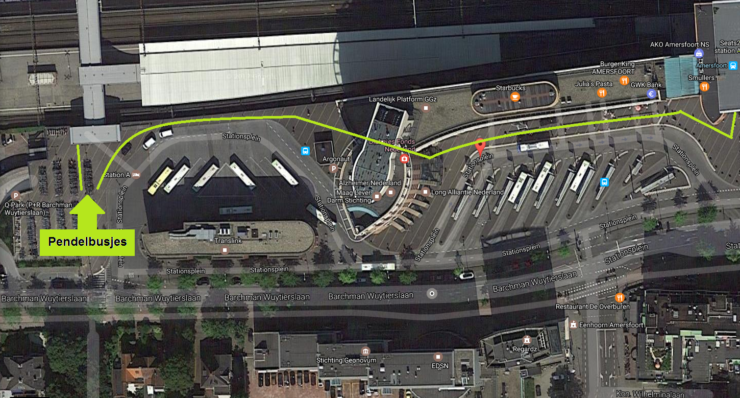 Als je met de trein komt, kun je vanaf station Amersfoort bus 56 richting Wijk bij Duurstede pakken of bus 34 richting Westraven P+R. Je stapt dan uit bij bushalte 'Zorgcentrum de Lichtenberg" aan de Utrechtseweg. Vanuit de bus gezien zie je Leerhotel het Klooster aan uw rechterzijde. Na het uitstappen loop je via het voetpad terug (ca. 200 meter). De ingang naar Leerhotel het Klooster bevindt zich aan de linkerzijde.